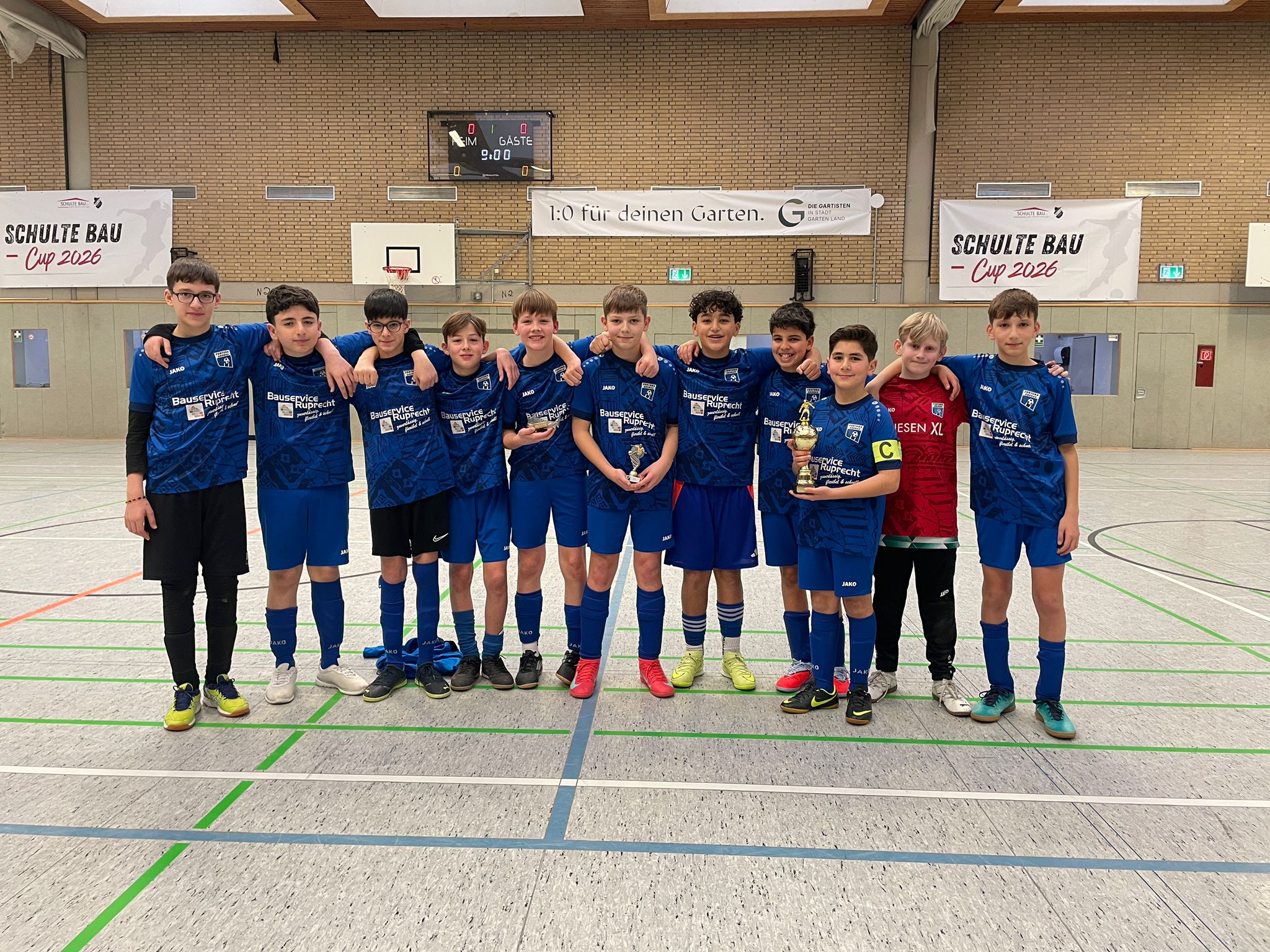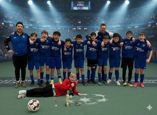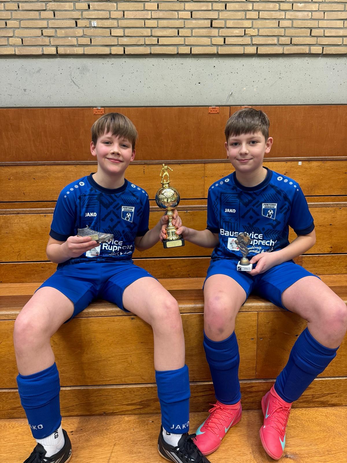 Als wahre Turniermonster entpuppten sich unsere Kicker der D2 beim Turnier des TuS Wüllen. Bereits zum zweiten Mal kletterten sie auf das Turniertreppchen, diesmal sogar ungeschlagen auf die allerhöchste Stufe. So ganz nebenbei stellten sie mit Niels Bonke den besten Turnierspieler sowie mit Jonas Sahle den erfolgreichsten Torschützen und räumten somit den Pokaltisch nahezu im Alleingang ab. Einen Glückwunsch auch an die Coaches Aydin und Marcel zu dieser fabelhaften Mannschaftsleistung.
